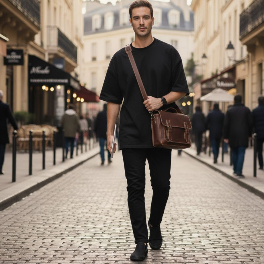 Chez Valmont, nous avons choisi l’essentiel : un cuir pleine fleur rigoureusement sélectionné, des finitions précises et un design utilitaire chic qui traverse les modes.